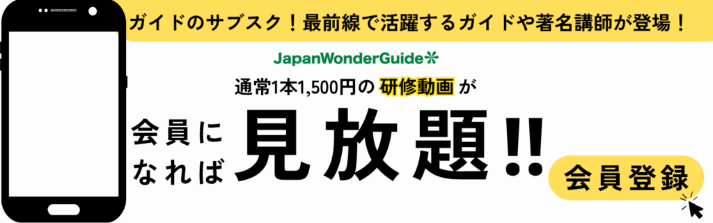 エリア研修だけでなく、仏教や神道、美術史などのテーマ研修やコミュニケーション研修など、ガイディングに役立つ様々な研修動画が揃っていますので、1本以上見てみたい!という方は、ぜひKnottistへの入会もご検討ください。