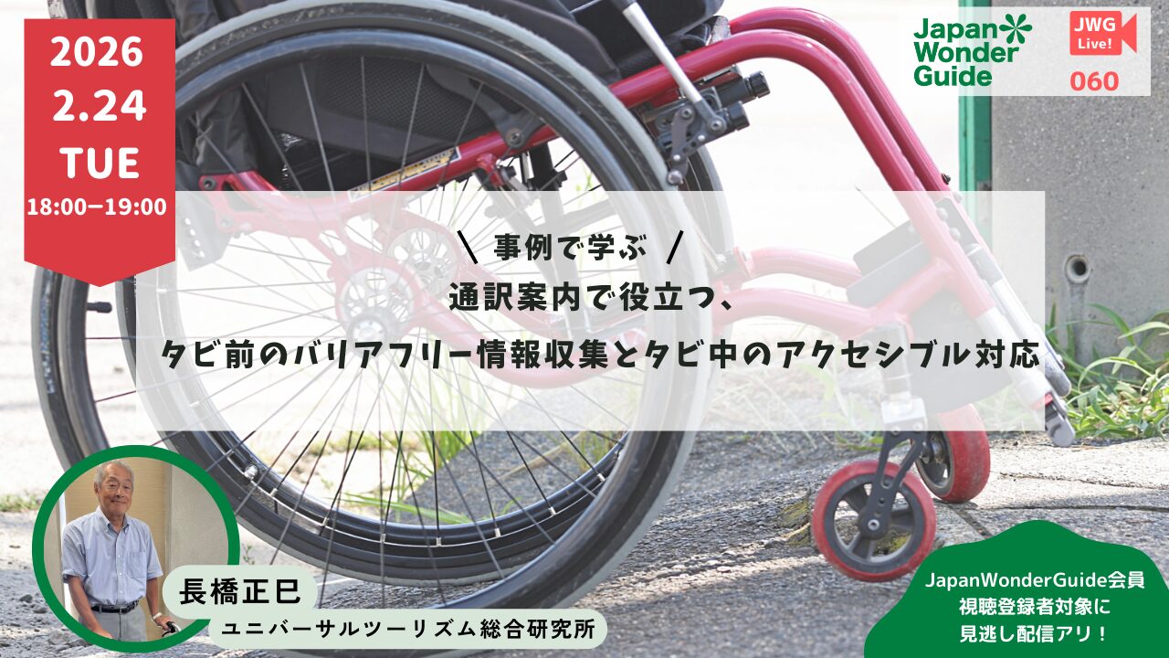 - 本編 「事例で学ぶ「通訳案内で役立つ、タビ前のバリアフリー情報収集とタビ中のアクセシブル対応」