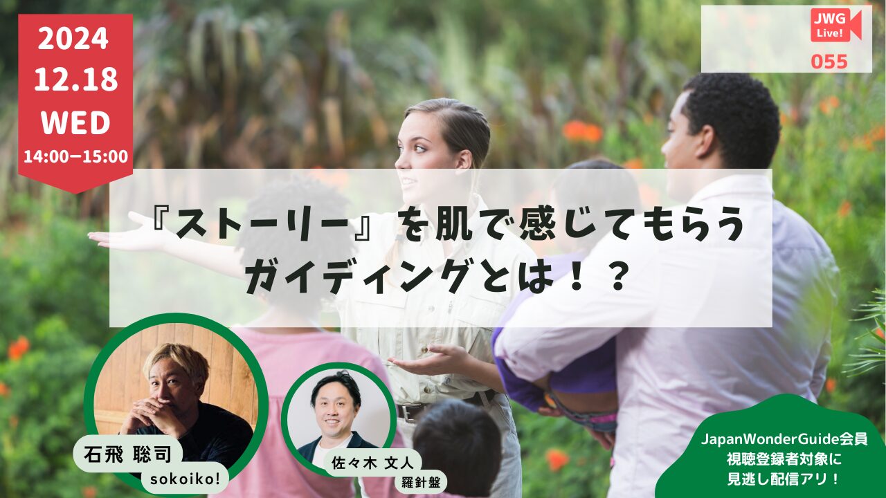 今回は、「『ストーリー』を肌で感じてもらうガイディング」をトークテーマに、株式会社mint sokoiko!代表石飛聡司様をお招きし、弊社代表佐々木文人と約60分間、講義と対談形式のウェビナーを開催します。石飛様は、地域のストーリーを活かしたツアー作りに注力され、現在では県内外で観光プランの企画やツアーのプロデュース、ガイド育成など幅広くご活躍されております。