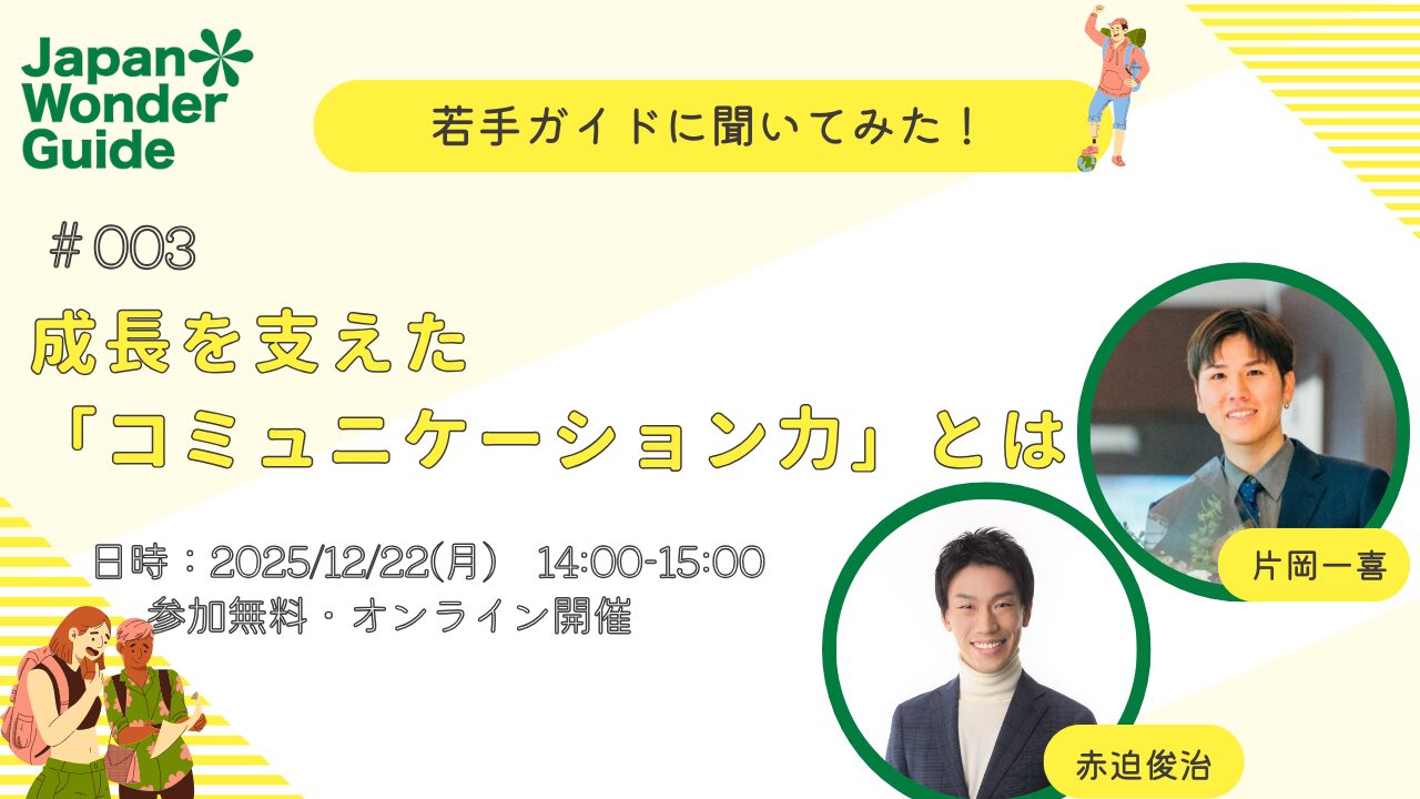 JapanWonderGuideでは、施設の方々や特別ゲストをお迎えして、ウェビナー形式でお話していただく無料オンラインイベントJWGLive!を定期的に開催しております。